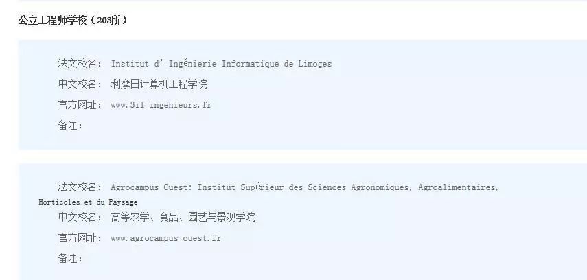 在国家教育部教育涉外监管信息网登记的法国公立工程师学校达到 203所。